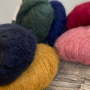 Lang Suri Alpaca differs from the more common Huacaya Alpaca in the characteristics of the fibers. Suri Alpaca is only slightly crimped and more lustrous. Our yarn is produced from 100% Suri Alpaca and is brushed. It has a beautiful, cosy feel and an enchanting sheen.