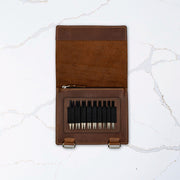 Inside, you’ll find an ample zippered pocket for cords, stoppers, connectors, and keys—or even an extra Velcro tab for more needles. A single Velcro tab with elastic loops holds your interchangeable needle tips snugly in place. It’s labeled with both US and metric sizes, and can be easily replaced as your collection evolves. All velcro tabs are interchangeable with our full-format Needle and Crochet Binder Pages, so you can easily shift your most-used tools to the Mini Binder when crafting on the go. Thoughtfully designed and made to last, it’s a flexible, travel-friendly storage solution that grows with you.